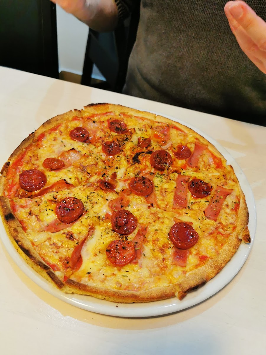 Great pizz and variety of choice. So many options.. The dough was super criapy and tastefull. We got 4 Stagioni, Jamon Iberico and Chorizo Pizza and they were all great. Nice terrace outside but not so much space inside. Its much nicer to sit outside.